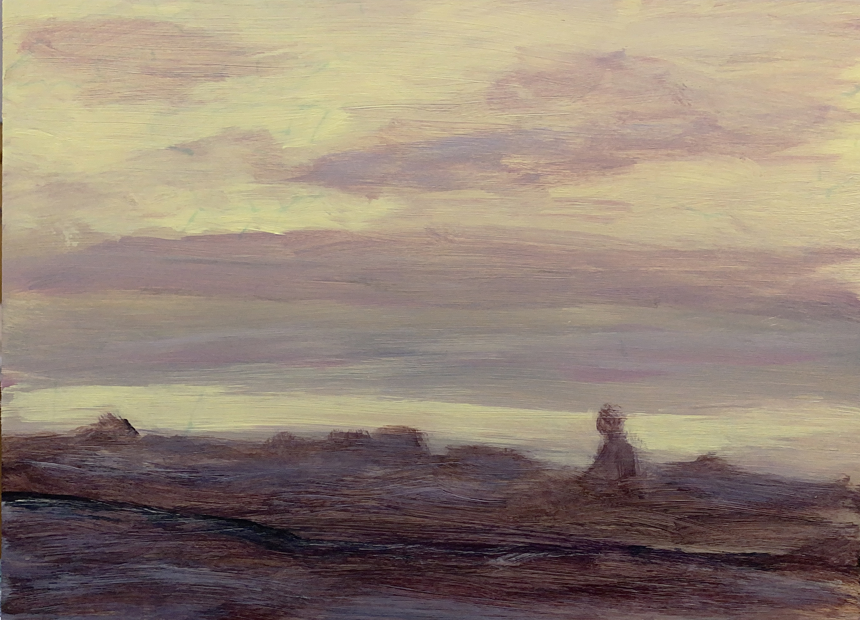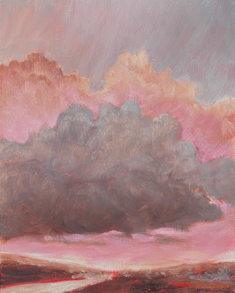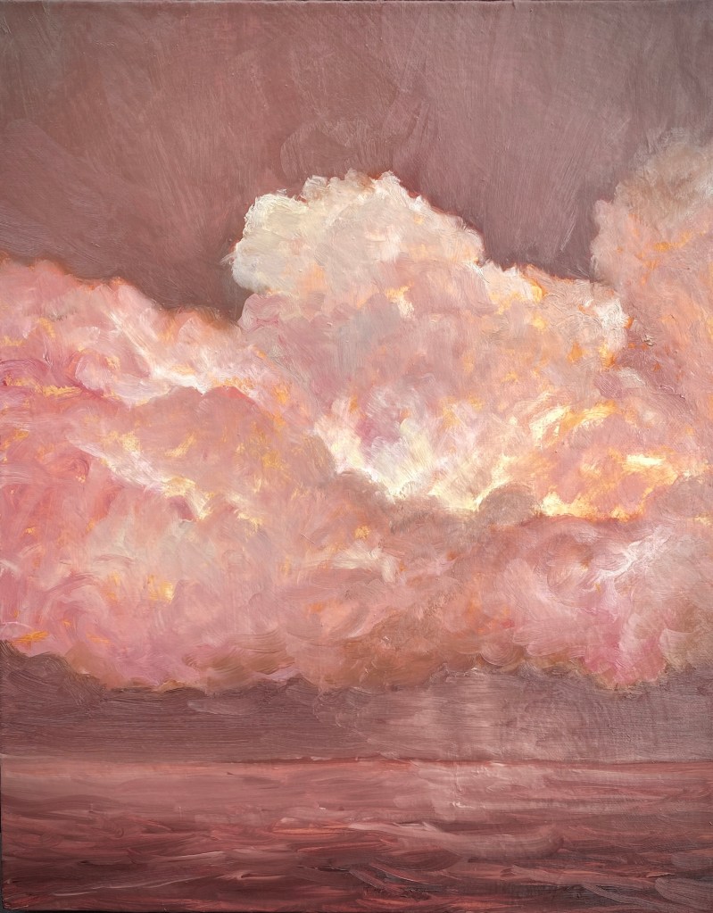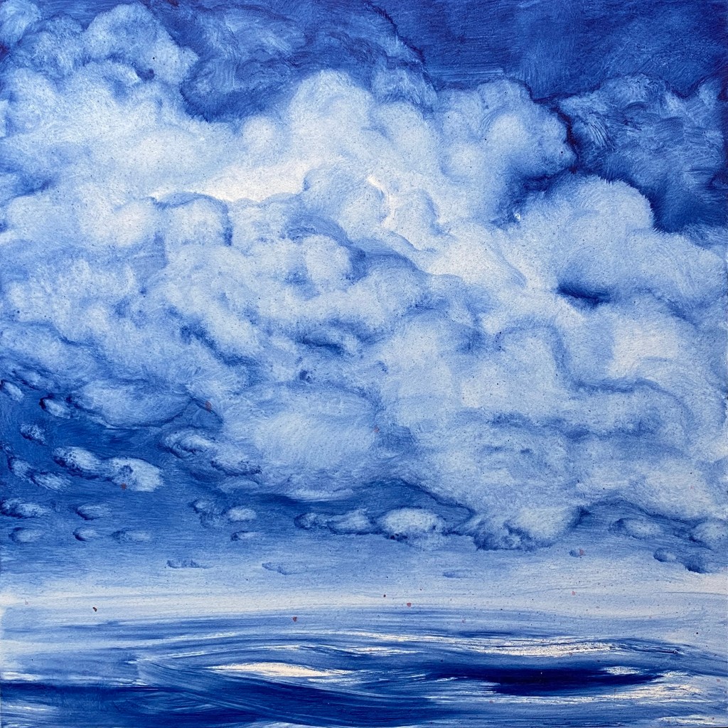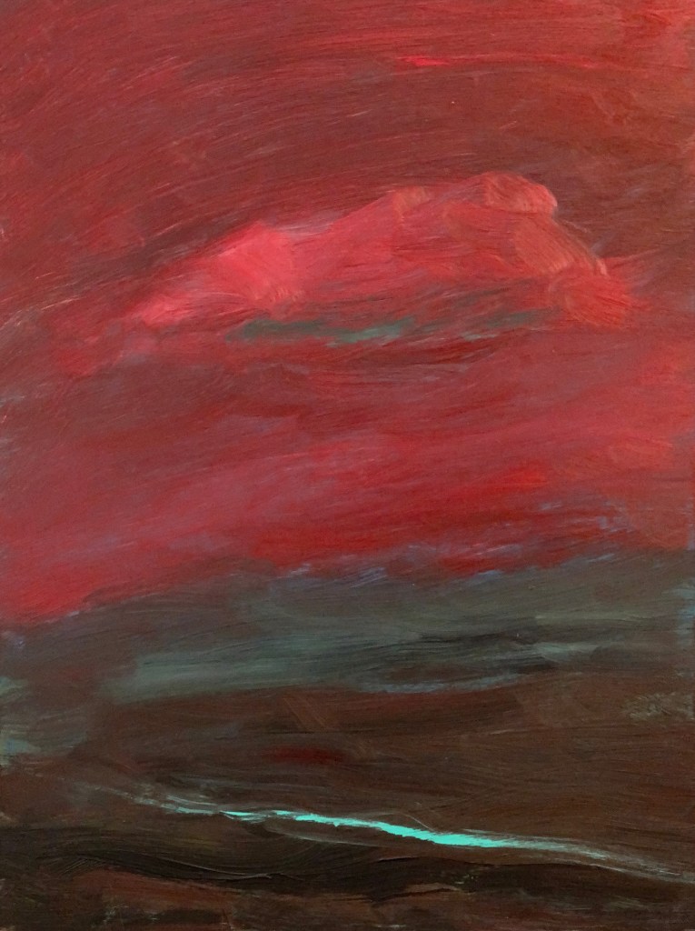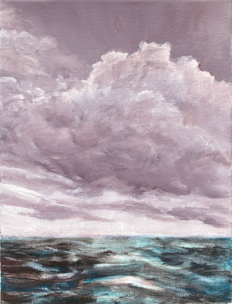Recently, I’ve become immersed in painting land-, sea- and skyscapes, exploring the ways in which they can both stand in for/hold space for the human body, for our exteriors and interiors. I feel a great emotional resonance and concordance with music while painting these spaces; trying to capture the temporal instabilities of visual and harmonic shifts. Based on both observations and imagination, the gestural marks and manipulated color notes of the works can act synesthetically to express the ways in which we experience the world around us, and as chromatic keys to unlock our memories and stimulate our emotions.