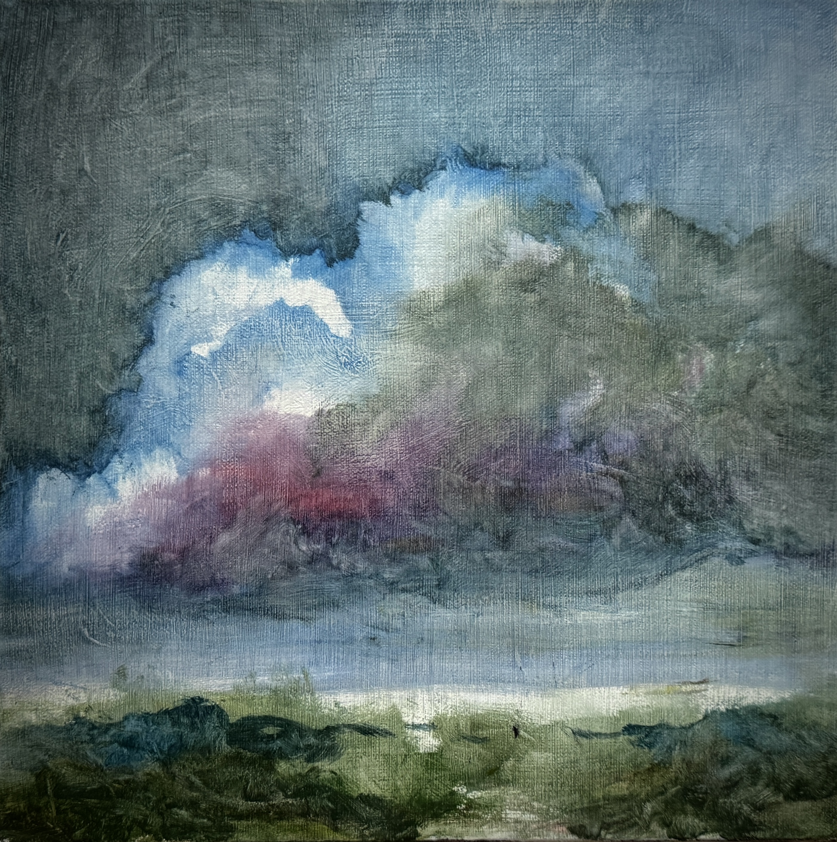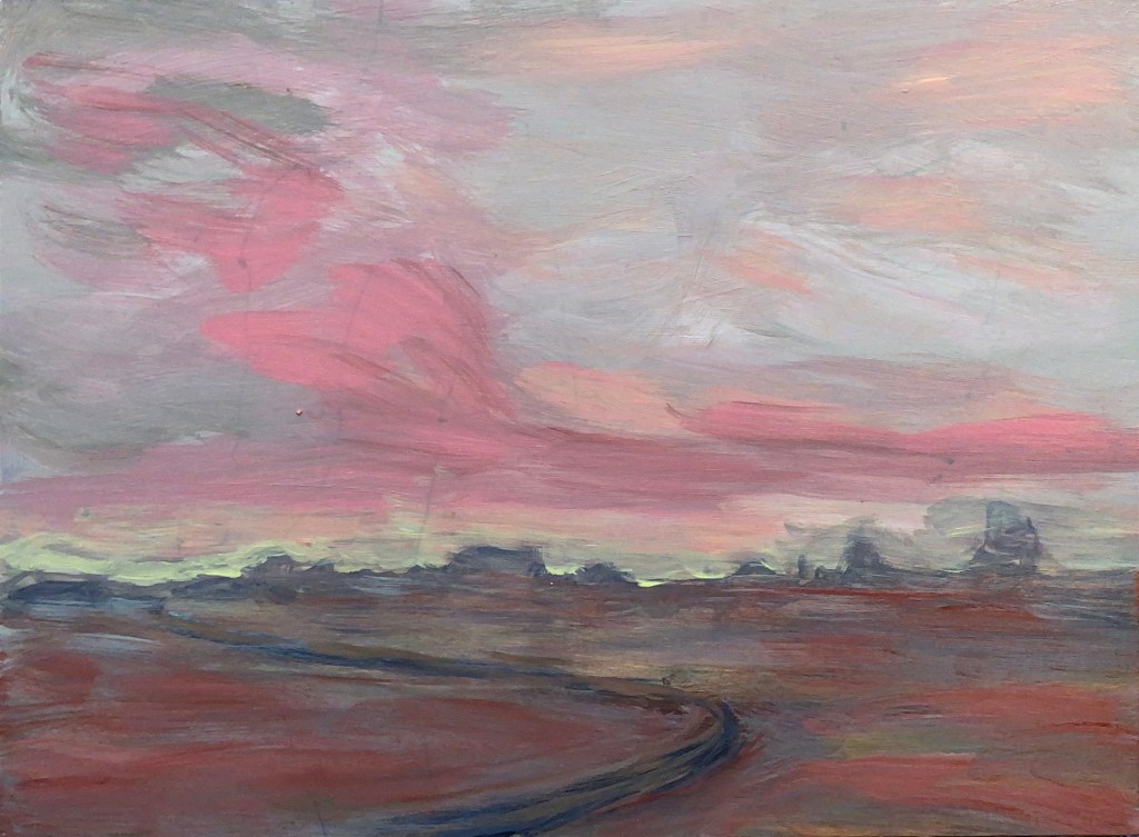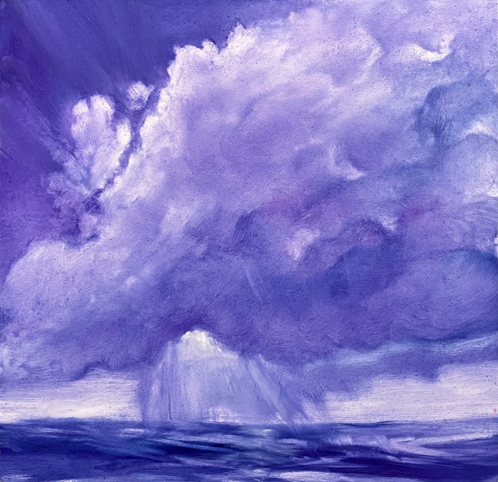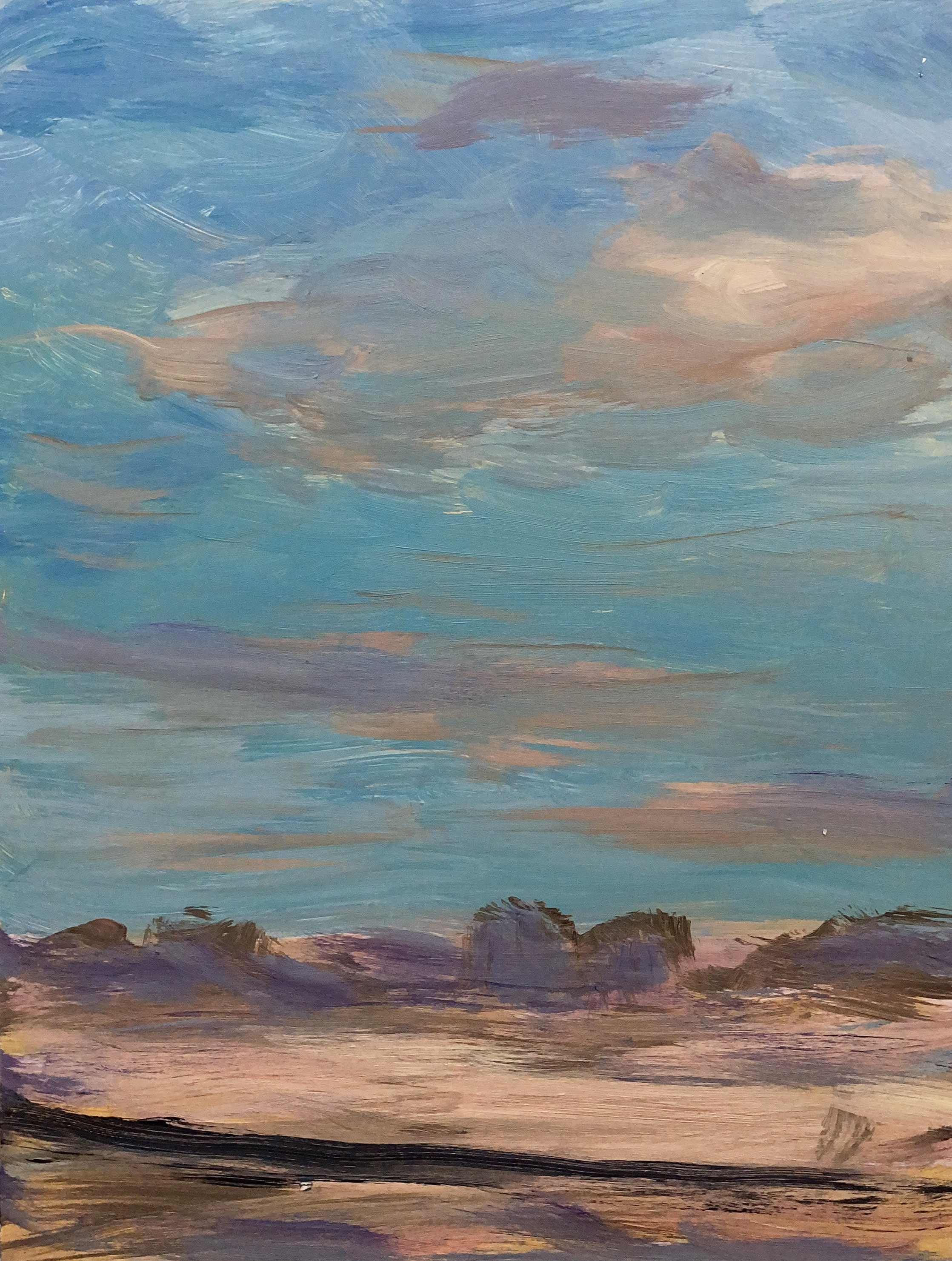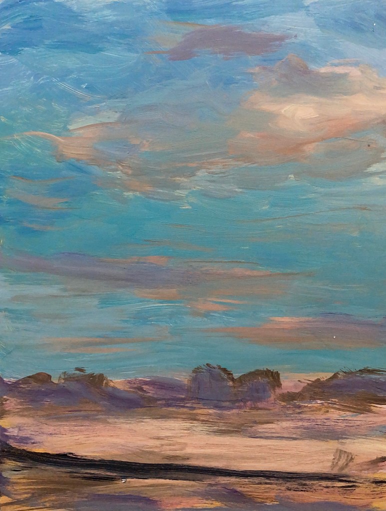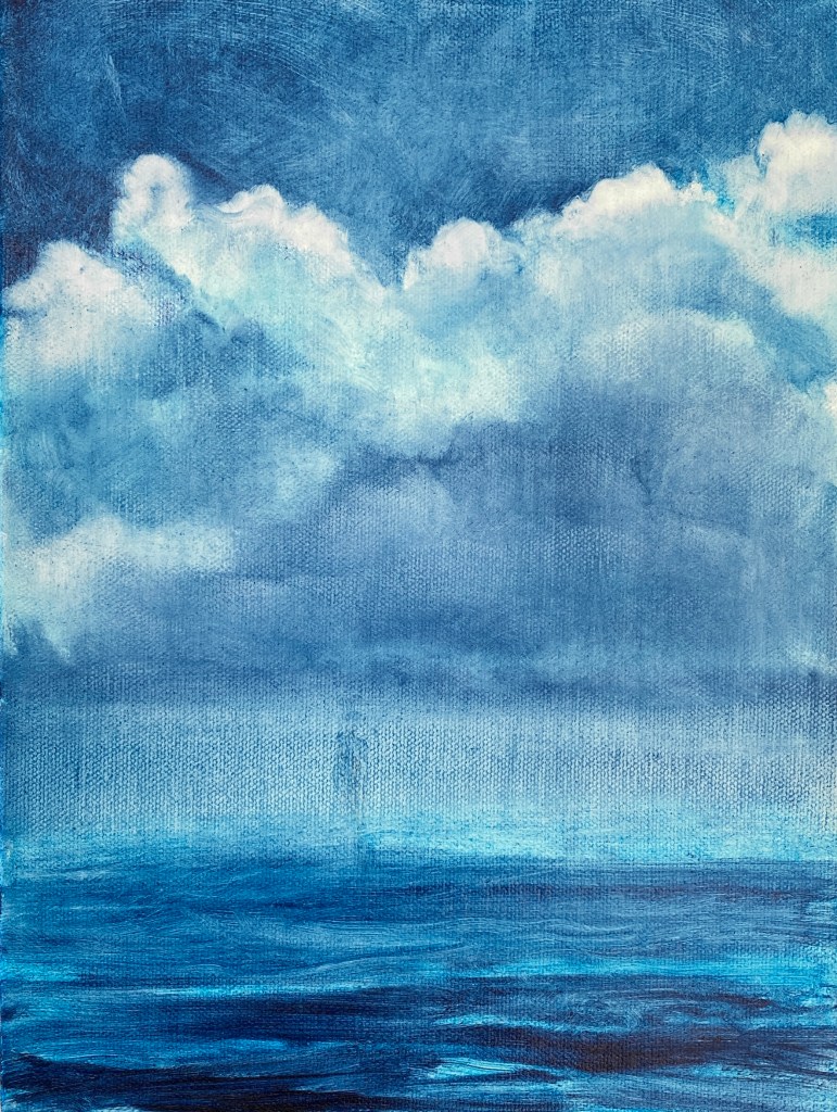 Recently, I’ve become immersed in painting land-, sea- and skyscapes, exploring the ways in which they can both stand in for/hold space for the human body, for our exteriors and interiors. I feel a great emotional resonance and concordance with music while painting these spaces; trying to capture the temporal instabilities of visual and harmonic shifts. Based on both observations and imagination, the gestural marks and manipulated color notes of the works can act synesthetically to express the ways in which we experience the world around us, and as chromatic keys to unlock our memories and stimulate our emotions.