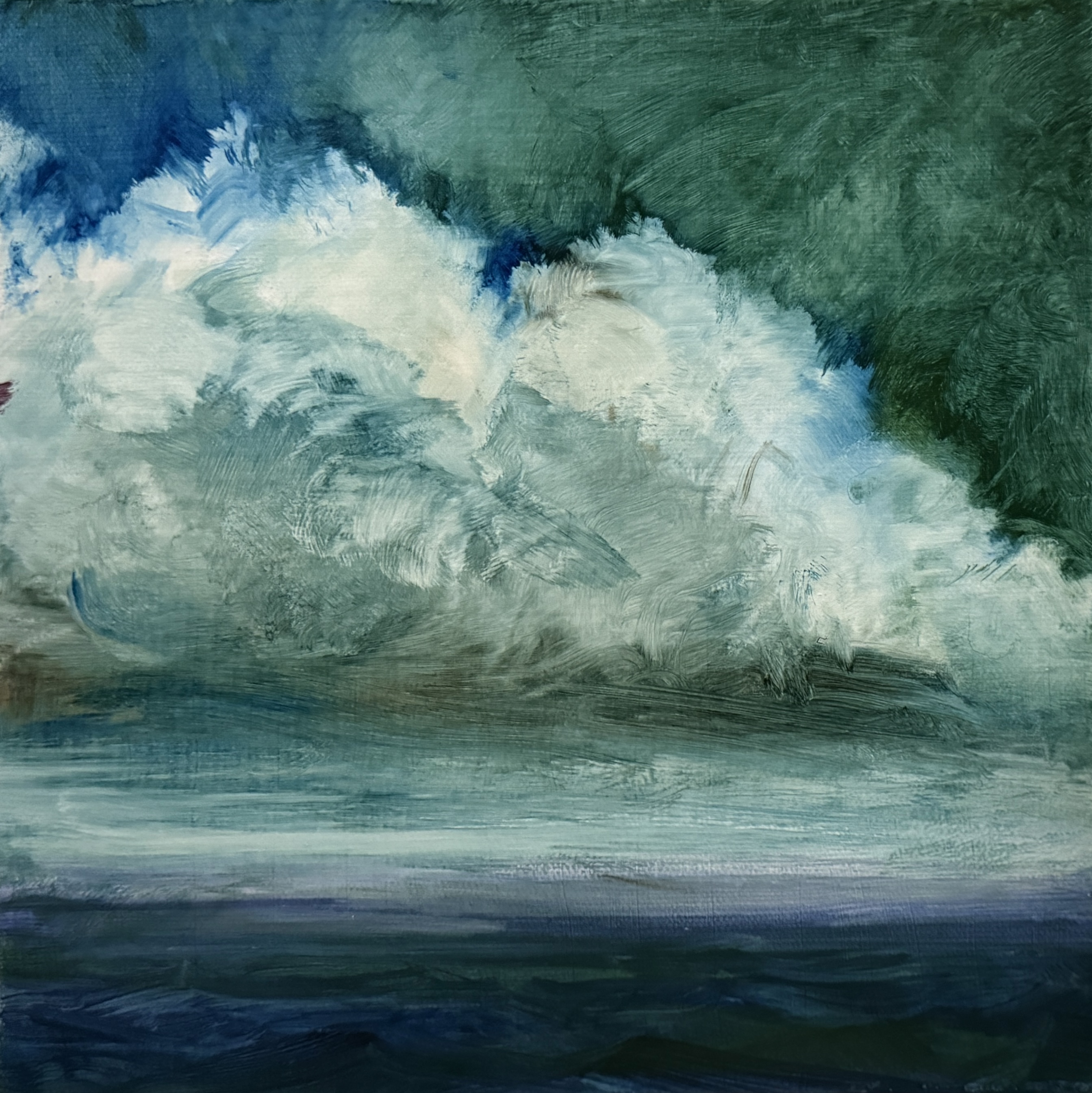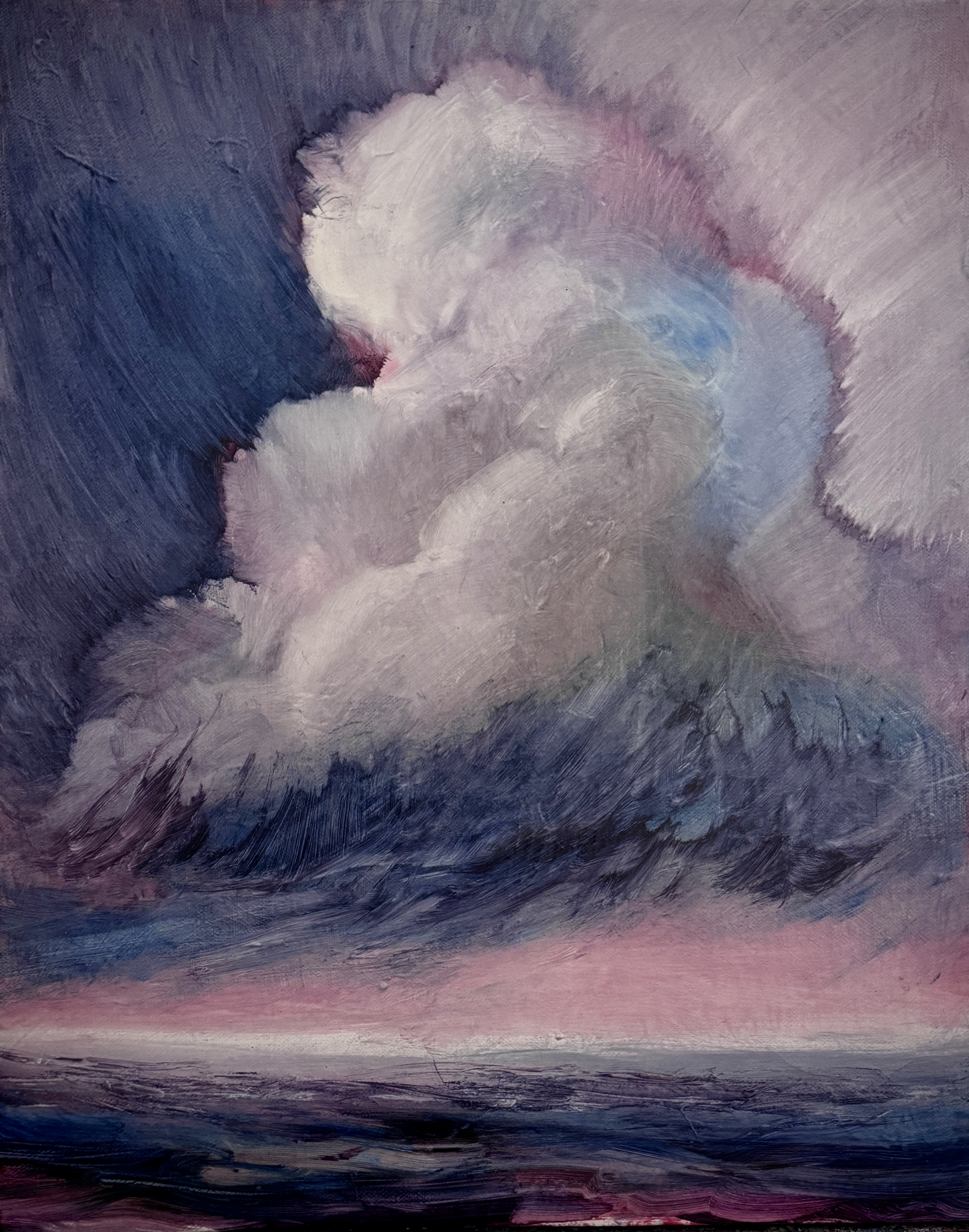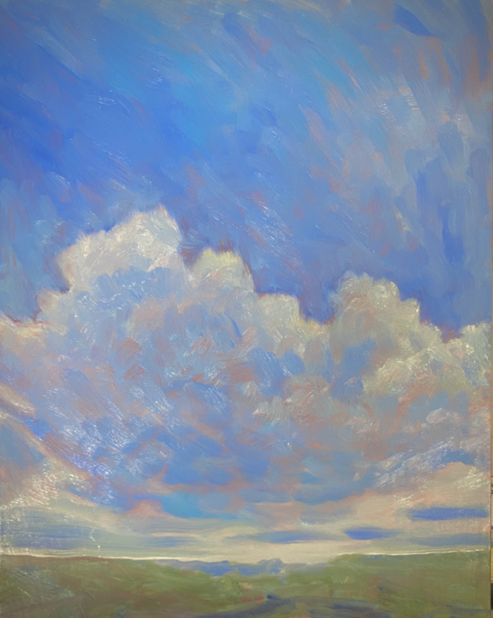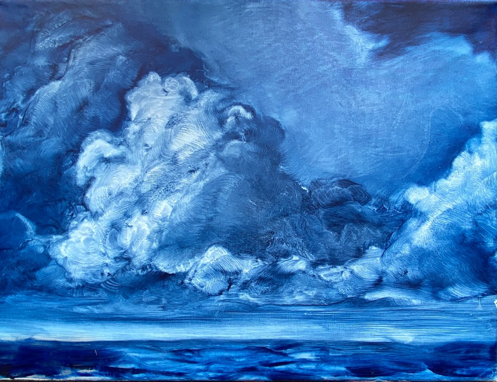 Recently, I’ve become immersed in painting land-, sea- and skyscapes, exploring the ways in which they can both stand in for/hold space for the human body, for our exteriors and interiors. I feel a great emotional resonance and concordance with music while painting these spaces; trying to capture the temporal instabilities of visual and harmonic shifts. Based on both observations and imagination, the gestural marks and manipulated color notes of the works can act synesthetically to express the ways in which we experience the world around us, and as chromatic keys to unlock our memories and stimulate our emotions.