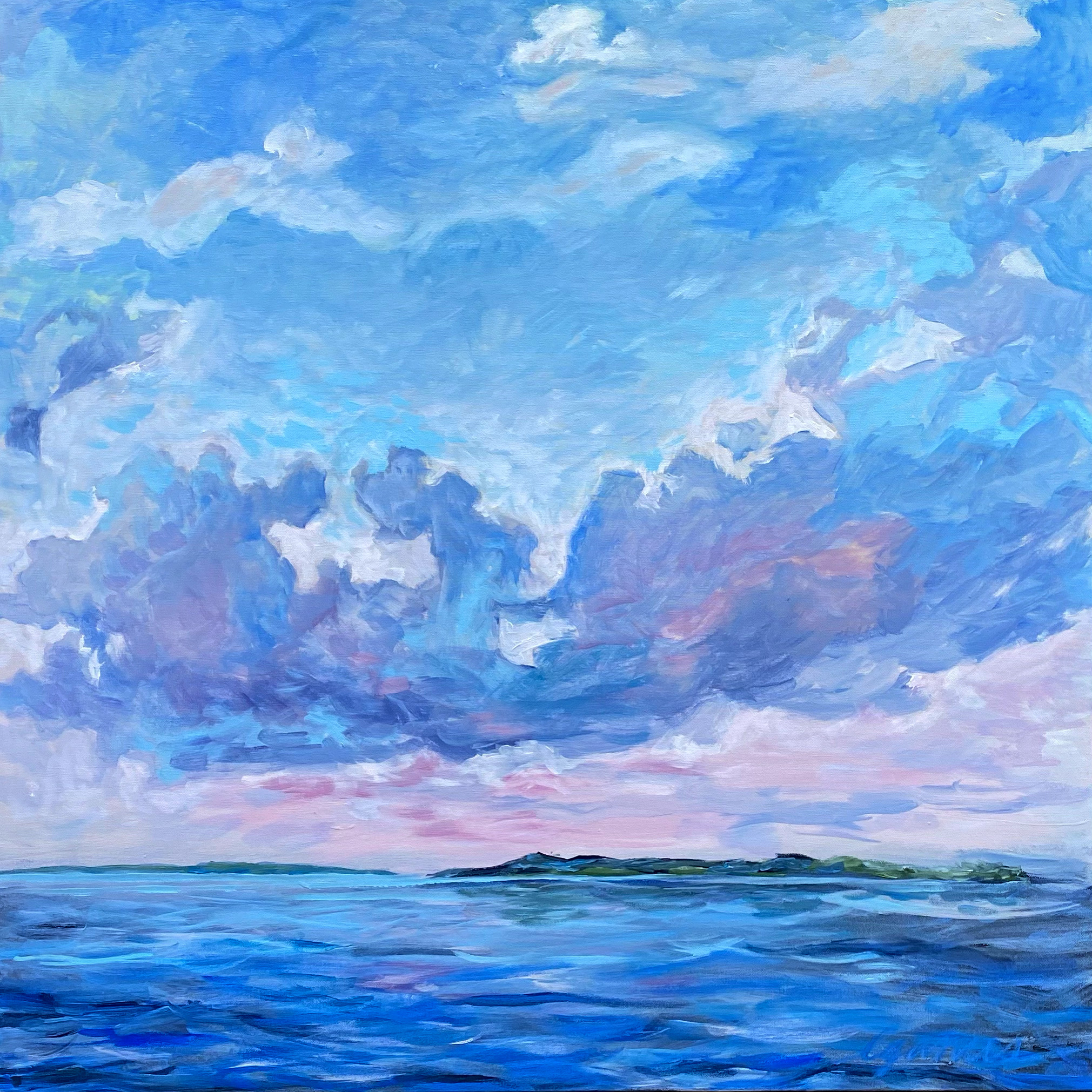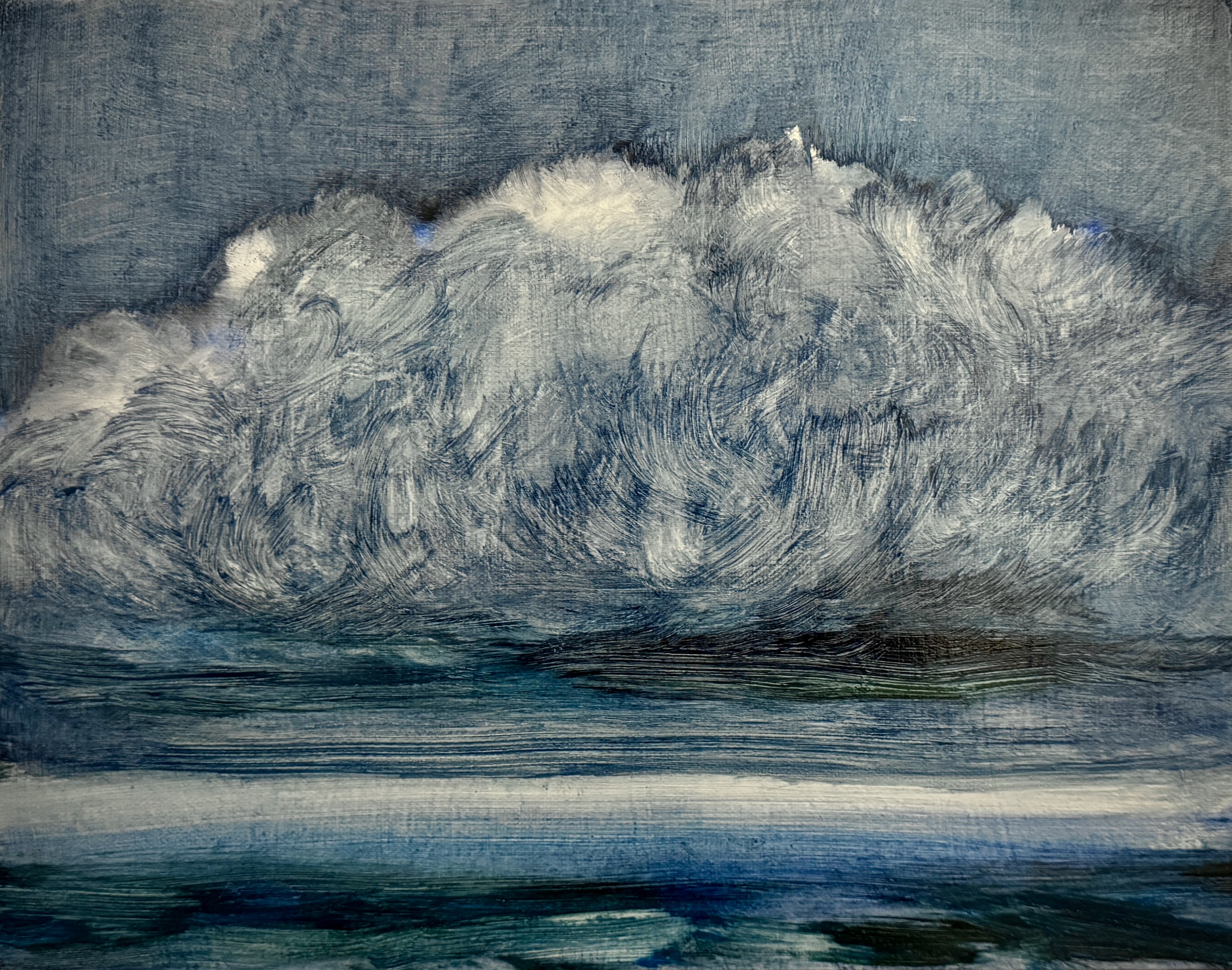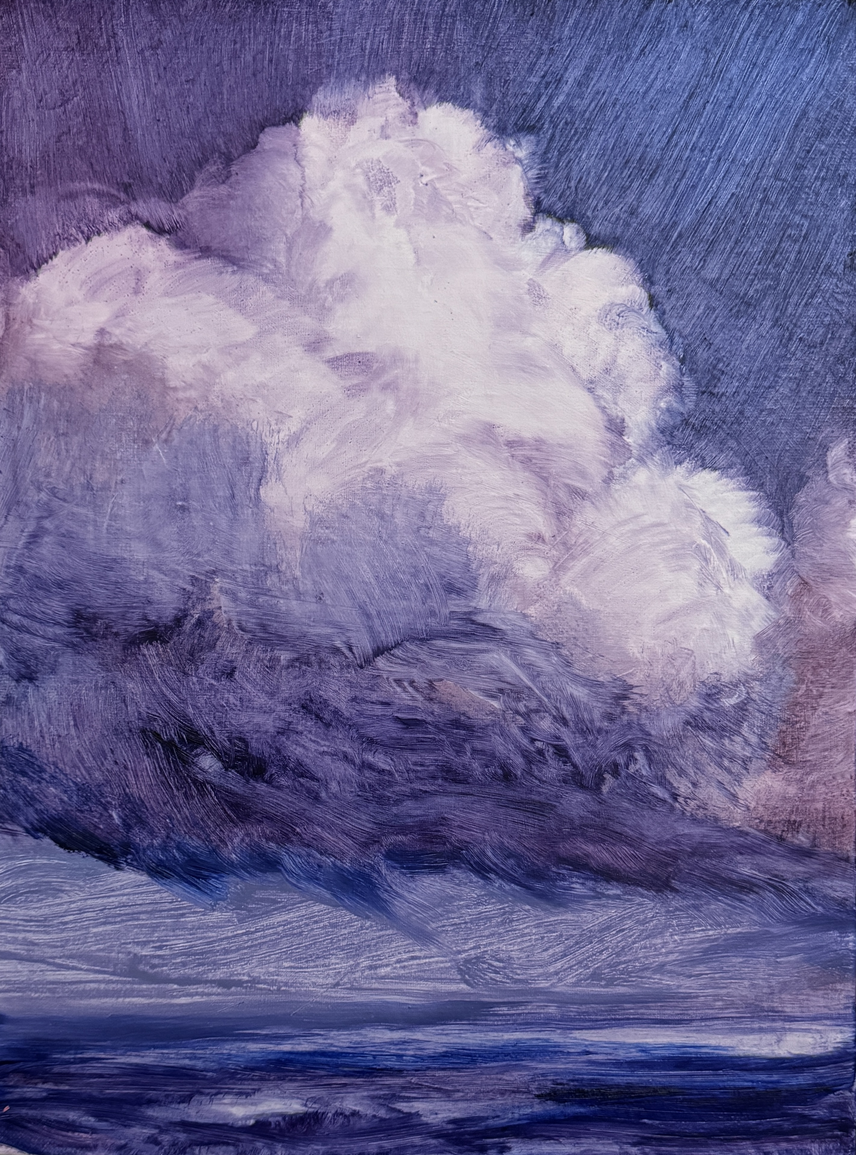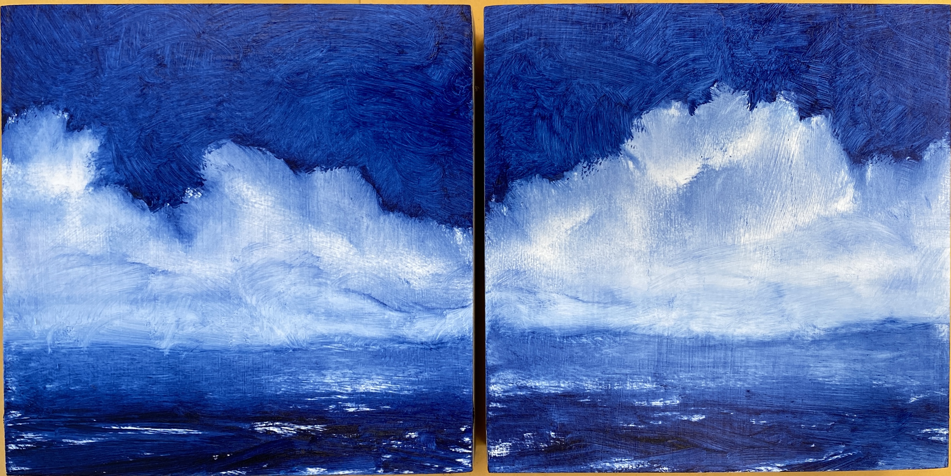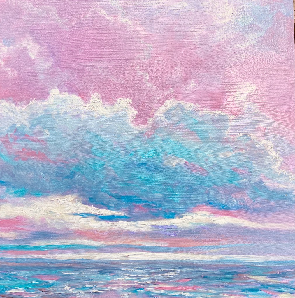 Recently, I’ve become immersed in painting land-, sea- and skyscapes, exploring the ways in which they can both stand in for/hold space for the human body, for our exteriors and interiors. I feel a great emotional resonance and concordance with music while painting these spaces; trying to capture the temporal instabilities of visual and harmonic shifts. Based on both observations and imagination, the gestural marks and manipulated color notes of the works can act synesthetically to express the ways in which we experience the world around us, and as chromatic keys to unlock our memories and stimulate our emotions.
