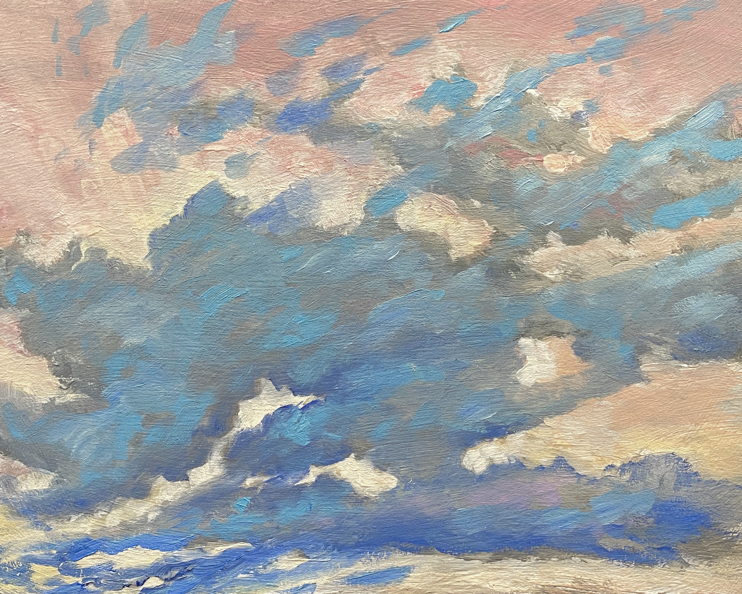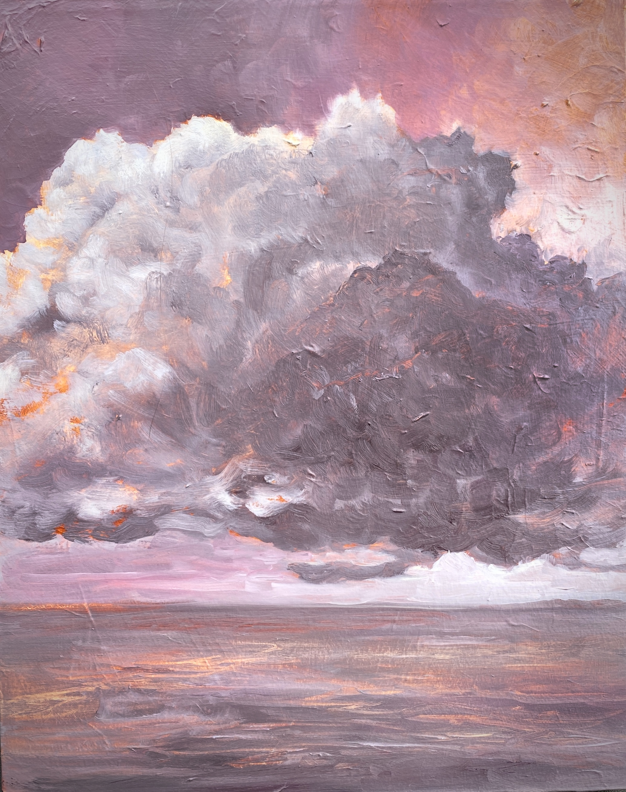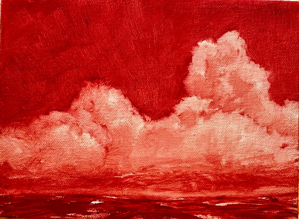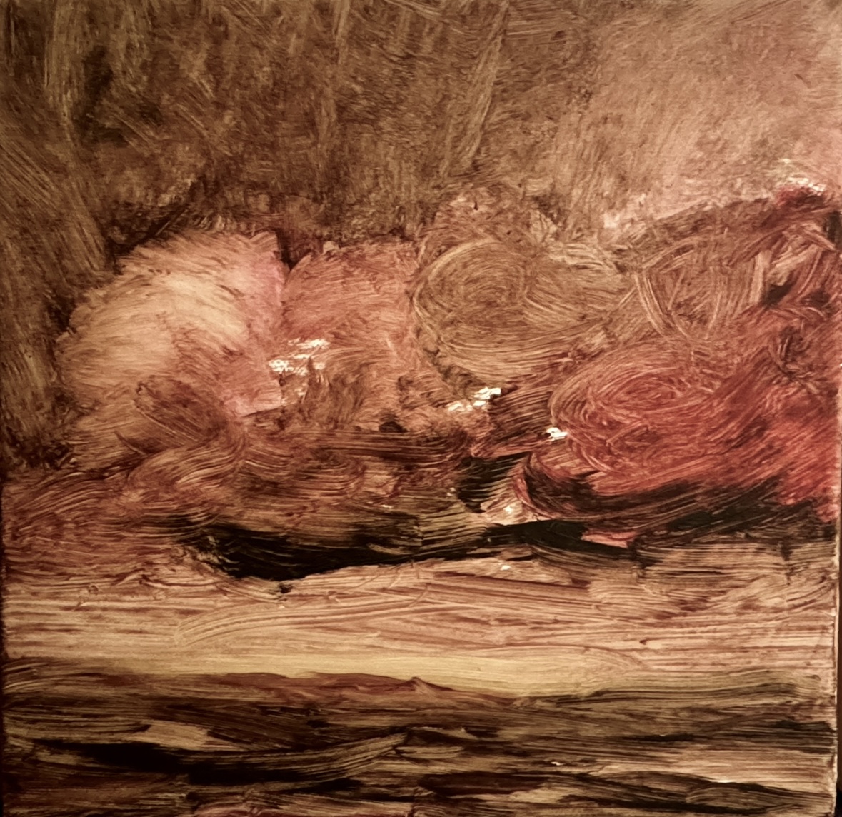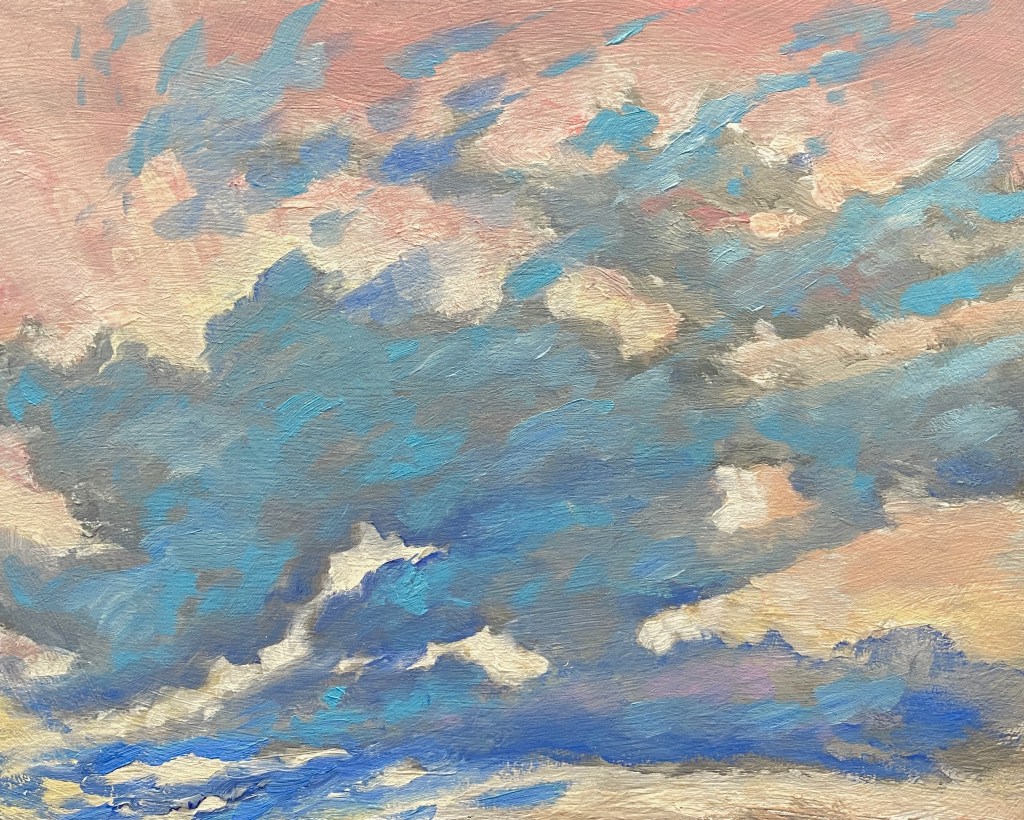 Recently, I’ve become immersed in painting land-, sea- and skyscapes, exploring the ways in which they can both stand in for/hold space for the human body, for our exteriors and interiors. I feel a great emotional resonance and concordance with music while painting these spaces; trying to capture the temporal instabilities of visual and harmonic shifts. Based on both observations and imagination, the gestural marks and manipulated color notes of the works can act synesthetically to express the ways in which we experience the world around us, and as chromatic keys to unlock our memories and stimulate our emotions.